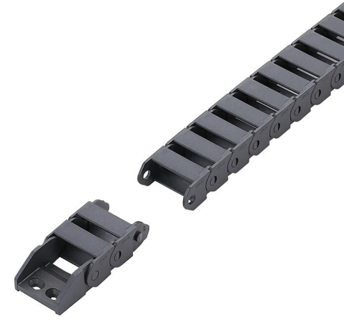 第一:采用優(yōu)質(zhì)的原材料使用改進(jìn)型的增強(qiáng)尼龍做為原材料,此種原材料可以很好的防止成品塑料拖鏈產(chǎn)生的靜電,安全系數(shù)超高,可以在任何的工作環(huán)境下適用。