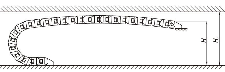 預(yù)應(yīng)力指的是拖鏈運行時上部的上拱度。所有易格斯拖鏈都帶有預(yù)應(yīng)力,無預(yù)應(yīng)力的產(chǎn)品可按要求提供。預(yù)應(yīng)力可以延長使用壽命,增加架空長度。在所有拖鏈的安裝尺寸描述中你都可以找到一個 HF 值。這就是在考慮預(yù)應(yīng)力的情況下實際安裝高度。但空間受限時,我們可以按要求提供無預(yù)應(yīng)力的拖鏈。但這類產(chǎn)品的承載力也與標(biāo)準(zhǔn)產(chǎn)品不同。
