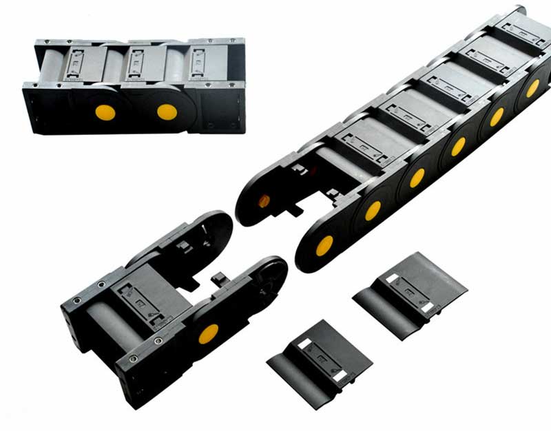 1.可將拖鏈內(nèi)外側(cè)擋片打開方便安裝、檢查或更換線纜;