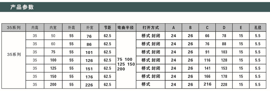 那第一個步驟的話有兩個方法,第一個方法是把需要內(nèi)置的電線電纜從拖鏈一頭直接穿進去,但是這種方法對于電線電纜使用比較長的情況下,使用起來不是特別的方便。特別是有一些電線電纜已經(jīng)安裝好了,或者電線電纜最前端有結(jié)這種情況,使用起來就完全不行。第二個方法是拿一把一字螺絲刀,以45度角斜插入拖鏈上側(cè)或下側(cè)檔片兩端的開啟孔中,用力向上翹,即可把檔片打開,然后把需要內(nèi)置的電線電纜直接平放于此內(nèi)即,再把檔片扣緊即可。
