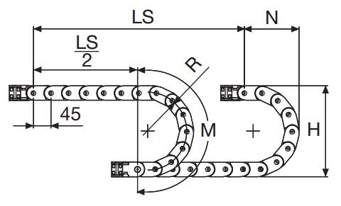 內(nèi)部高 (D) 25 mm,尼龍拖鏈帶有大的中心抗磨銷軸的單鏈節(jié)結(jié)構(gòu),同樣抗扭抗拉??梢蕴峁┐怪钡姆指羝?。如果使用導(dǎo)向槽,這種拖鏈特別適合長行程應(yīng)用。